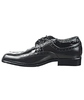 For dress shoes with flashy flair, check out this pair from Bolano. The upper has paneling of faux leather and shiny faux snakeskin, with brogueing on the seam edges. The classic lace-up design has a sturdy square toe. Tread on the sole and light cushioning in the heel provide kid-friendly comfort. All Man Made Materials Made in China